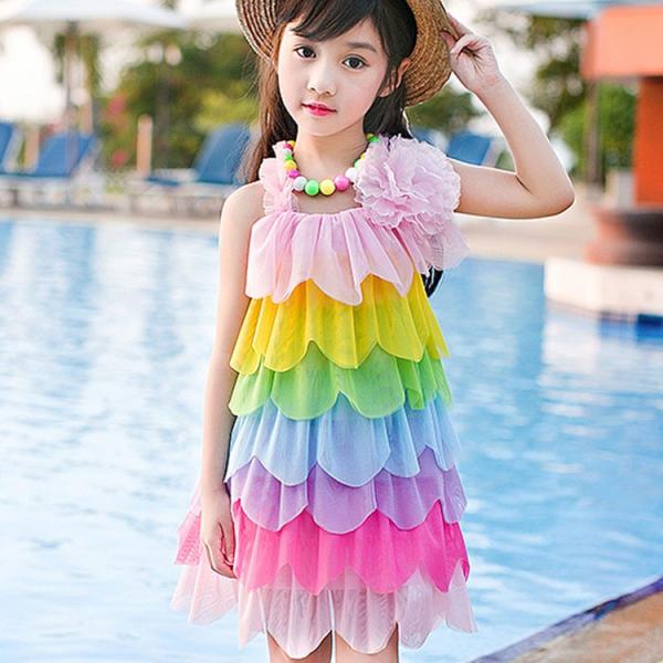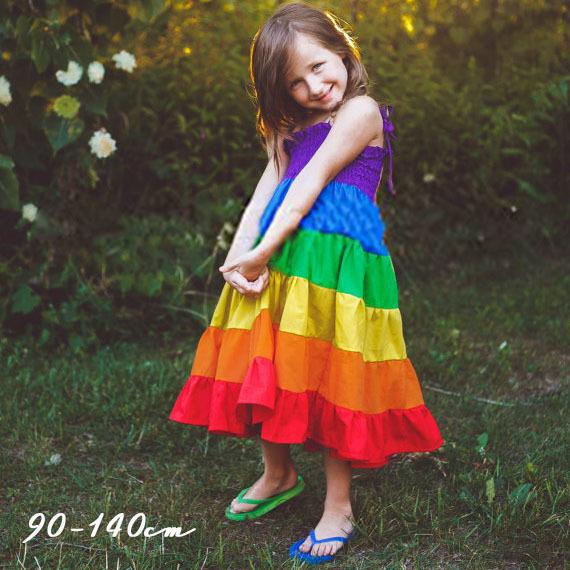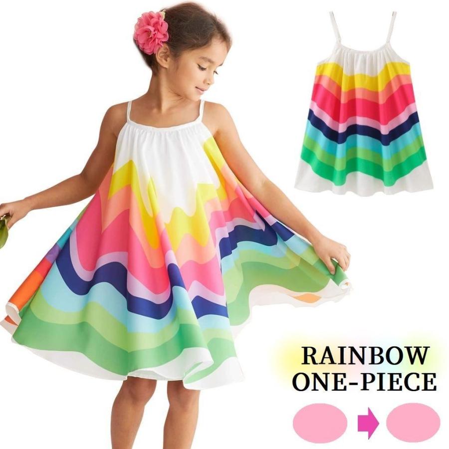 ロングワンピース キャミソールワンピース キッズ ベビー 女の子 レインボー 虹 カラフル aライン ボーダー 子供服 春 夏 海 お出かけ プール top 22229 おとりよせ com 通販 yahoo ショッピング