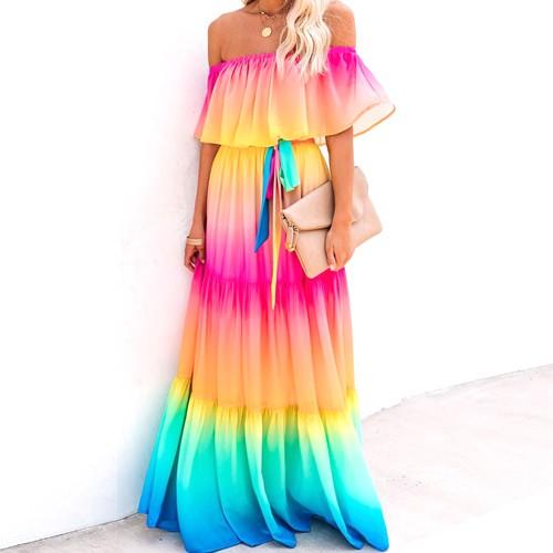 マキシワンピース レディース ティアードワンピース レインボー 虹色 半袖 韓国 ad13732 cocounsecret 通販 yahoo ショッピング