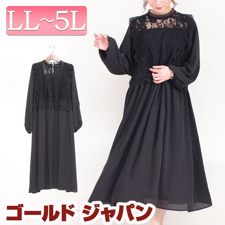 大きいサイズ レディース ワンピース レース切替えシフォンワンピース シフォンワンピース レースワンピース 冬新作 ll 2l 3l 4l 5l ブラック ゴールドジャパン anc 42242 大きいサイズ レディース gold j 通販 yahoo ショッピング