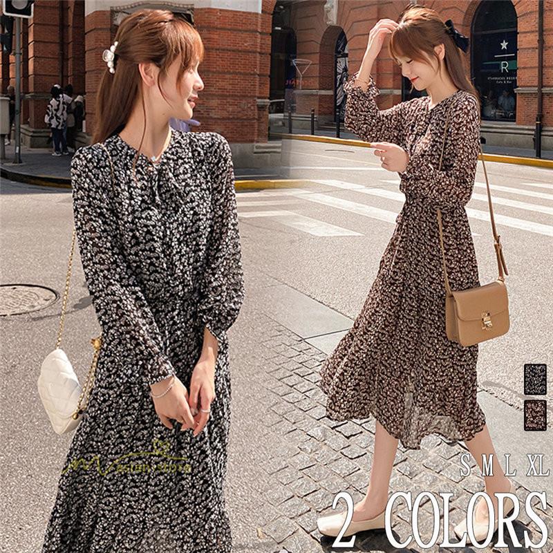送料無料 レトロ風ワンピース 長袖ワンピース aラインワンピース 韓国ファッション 3color felixwoman powered by base
