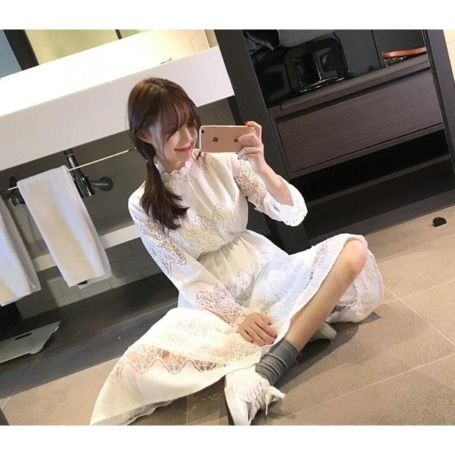 総レース ワンピース レース 黒 白 パーティー トップス 透け感 シースルー 秋冬 重ね着 大人可愛い ガーリー フリル ニット au pay マーケット