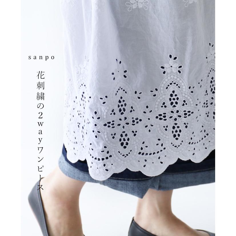花 花柄 刺繍 ワンピース チュニック ノースリーブ ホワイト ロング丈 薄手 白 レース タンクトップ 無地 上品 シック 重ね着 柄 春 夏 涼しい b06213ko sanpo 通販 yahoo ショッピング