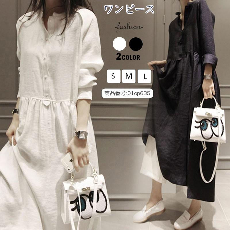 シャツワンピース ロング丈 ワンピース レディース ロングワンピース 長袖 コットン ロングシャツ トップス チュニック リネン アウター 無地 30代 40代 01op635 福丸 通販 yahoo ショッピング