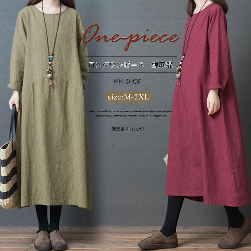 ワンピース レディース 春 コットンリネン 秋 ロングワンピース 長袖 体型カバー 大きいサイズ ゆったり 着痩せ 30代 40代 50代 qc5007 yll qc5007 youdear 通販 yahoo ショッピング