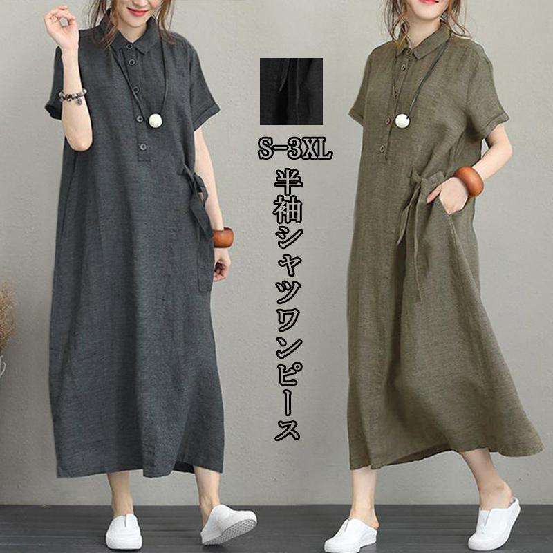 ロングワンピース 夏 半袖 コットン ゆったり 無地 ベルト付き 体型カバー aライン おしゃれ ママワンピース 上品 大人 夏物 yll qc7932 youdear 通販 yahoo ショッピング