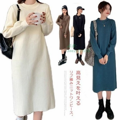 バックオープンリボンリブロングワンピース e2214 レディース バックシャン リラックス 楽ちん マキシ丈 ワンピース 秋 長袖 ロングワンピース 秋冬 冬 大人 おしゃれ きれいめ マキシワンピース リブ スリット 黒 ブラック
