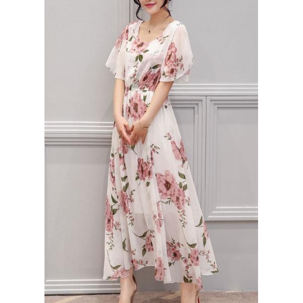 amazon co jp gergeousシフォンワンピース レディース ゆったり ロングワンピース 花柄 vネック ファッション リゾートワンピース ボヘミアン風 おしゃれ マキシワンピース 着痩せ ビーチ 夏 服 ファッション小物