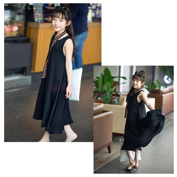 amazon 子供服 ワンピース 女の子 ロングワンピース 袖なし 切り替え キッズ ワンピース110 120 130 140 150 無地 ゆったり ホワイト ブラック コットン リネン風ワンピース 美ライン ワンピース チュニック 通販