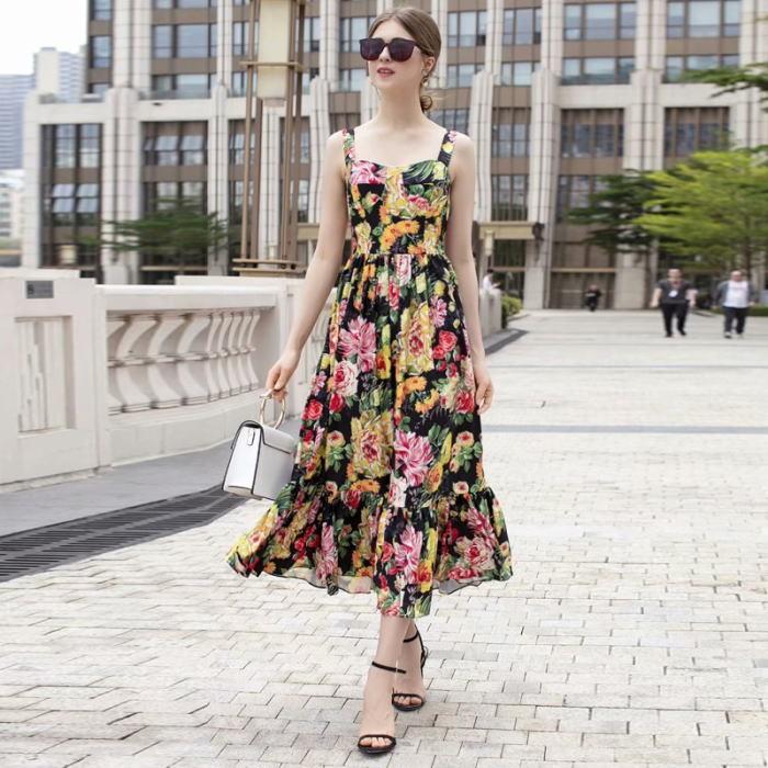 大注目 ワンピース 花柄コルセットフリルキャミソールふんわりaラインロングワンピース ブラック 黒 イエロー 黄色 レッド 赤 お嬢様 大人 ポイント10倍 www muslimaidusa org