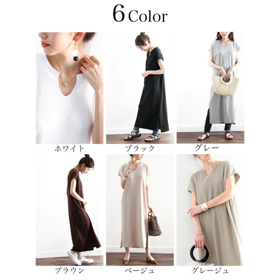 マキシワンピース 長袖 春夏 メール便c 送料無料 キーネック ワッフル ワンピース マキシ丈ワンピース 大きいサイズ ドロップショルダー サイドポケット 無地