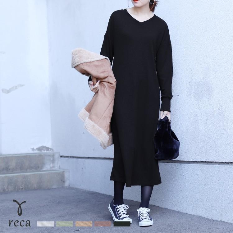 vネックワッフルワンピース レディース ロング丈 マキシ丈 長袖 ゆったり ビッグシルエット 体型カバー 伸縮性 秋 冬 170013 g メール便対応10 170013 g reca 通販 yahoo ショッピング