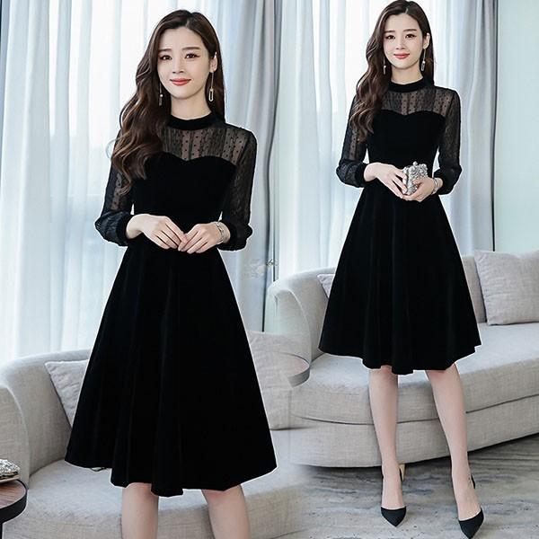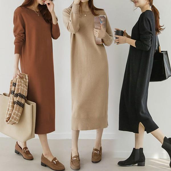 ワンピース レディース 40代 きれいめ 長袖 上品 秋冬 膝丈ワンピース 無地 丸首 大きいサイズ パーティードレス 韓国風 おしゃれ 可愛い 通勤 着痩せ ol 新品
