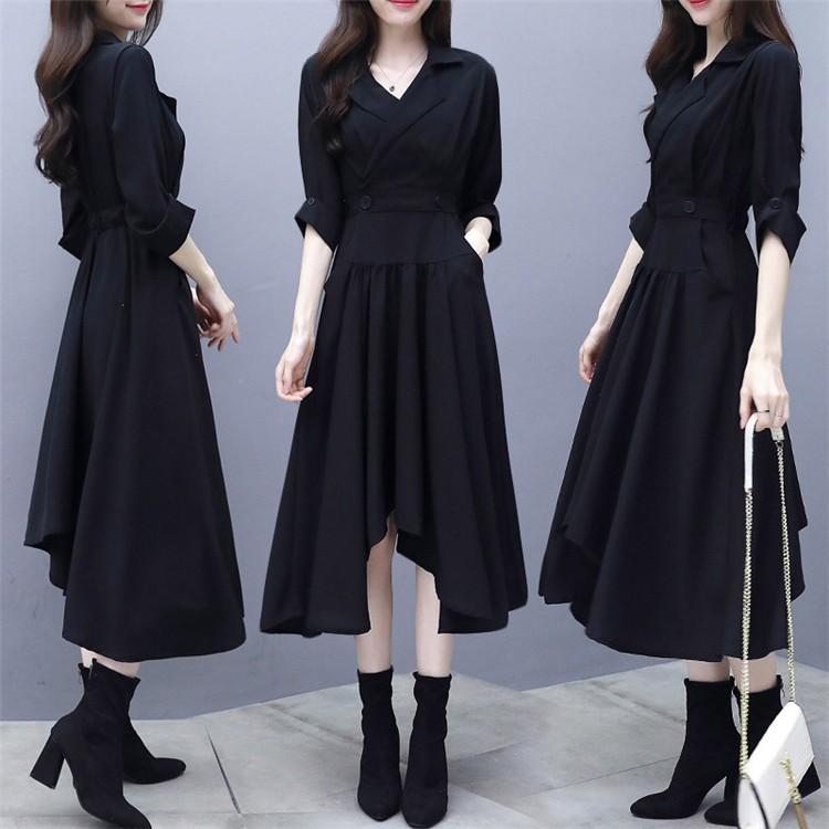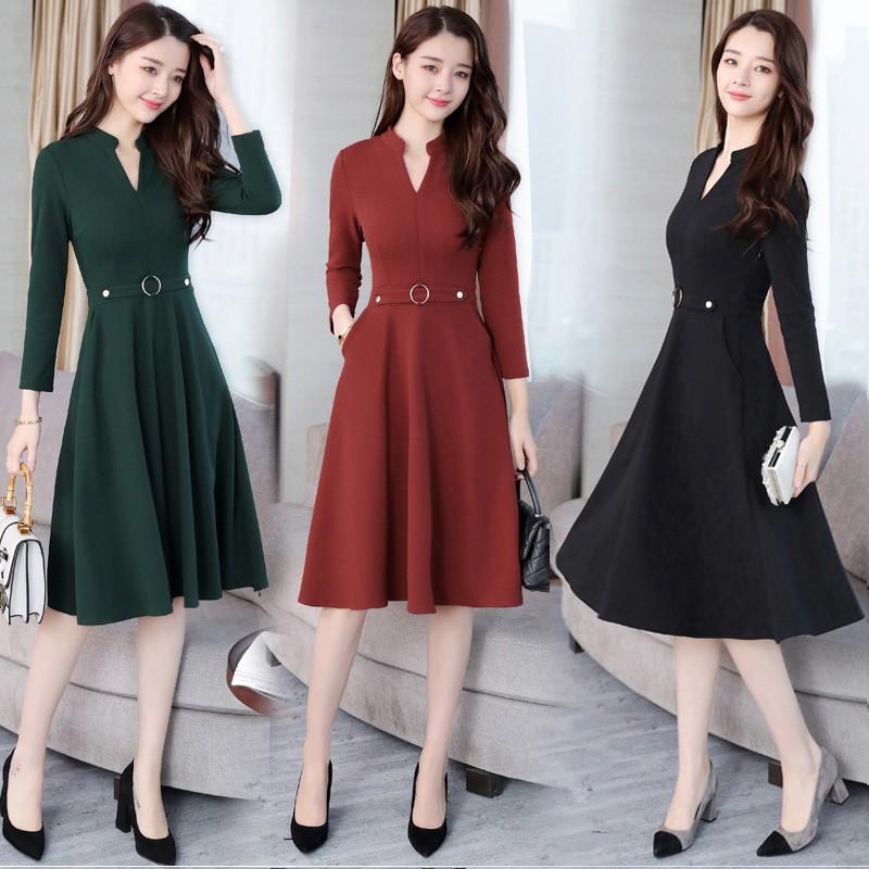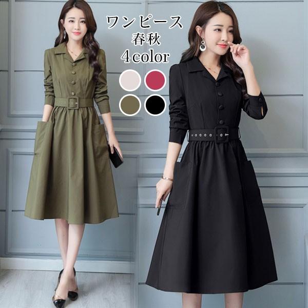 ワンピース レディース 40代 春秋 膝丈ワンピース きれいめ 長袖 大きいサイズ 膝丈ワンピース aライン v ネック 無地 着痩せ 通勤 lops301 lizstore 通販 yahoo ショッピング