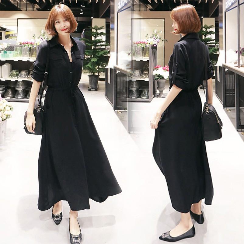 送料無料 ワンピース レディース マキシ丈ワンピース きれいめ 長袖 シャツ風ワンピース 無地 ベルト付き vネック 黒 マキシ丈ドレス 通勤 buyee buyee japanese proxy service buy from japan bot online