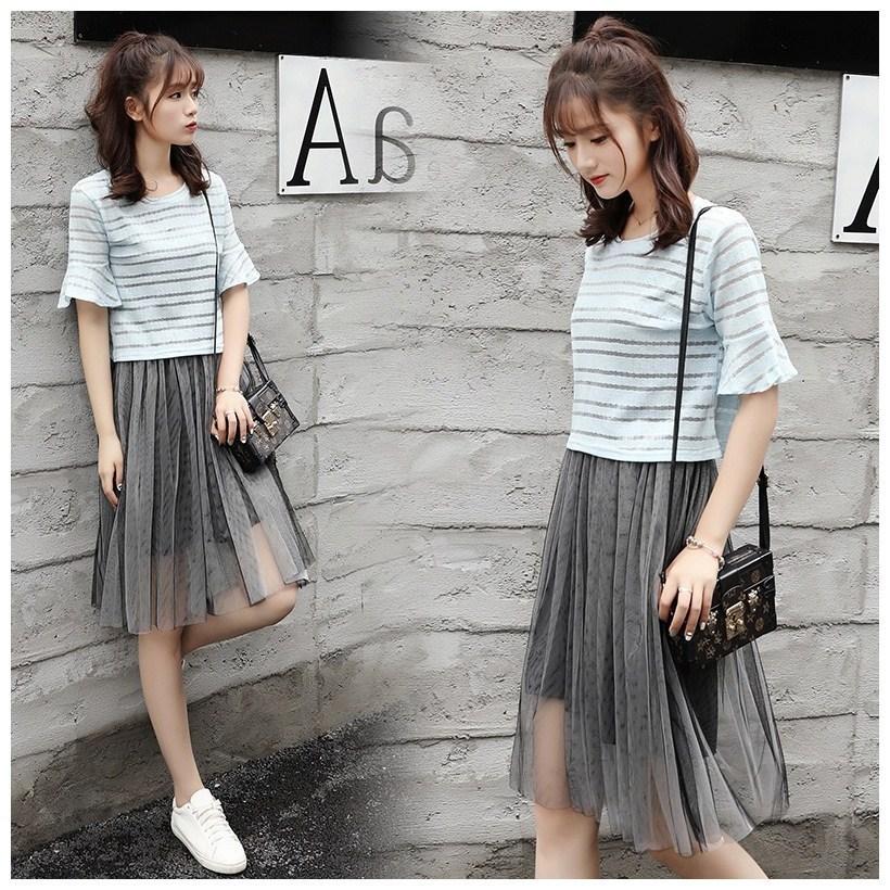 cawaii カワイイ の ウエストをリボンで飾ったチュールスカートワンピース 膝上丈 半袖ワンピース ワンピース wear
