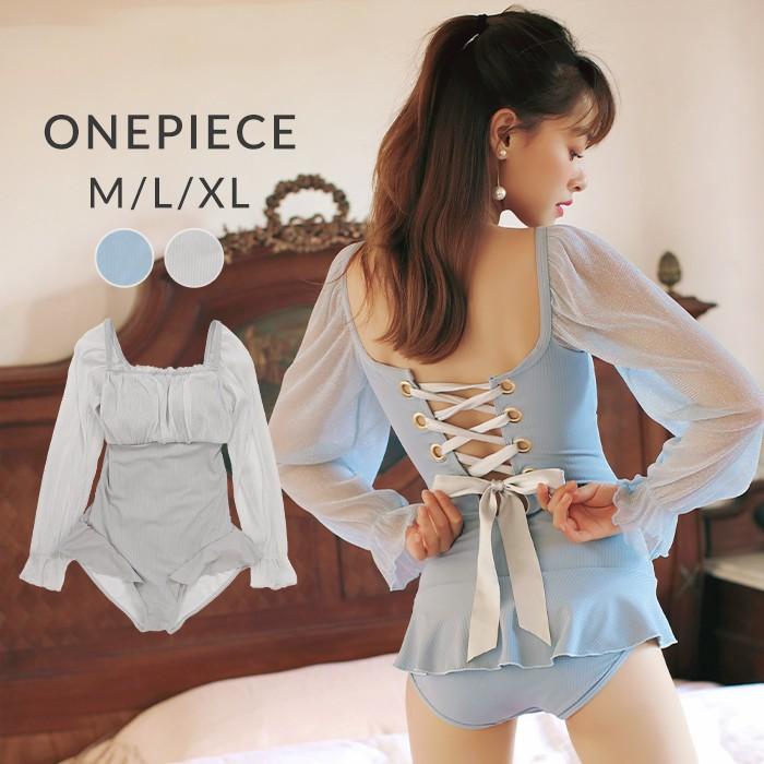 2018 新作 水着 フロントレースアップ スカラップ ワンピース水着 レディース 夏 海 プール 体型カバー