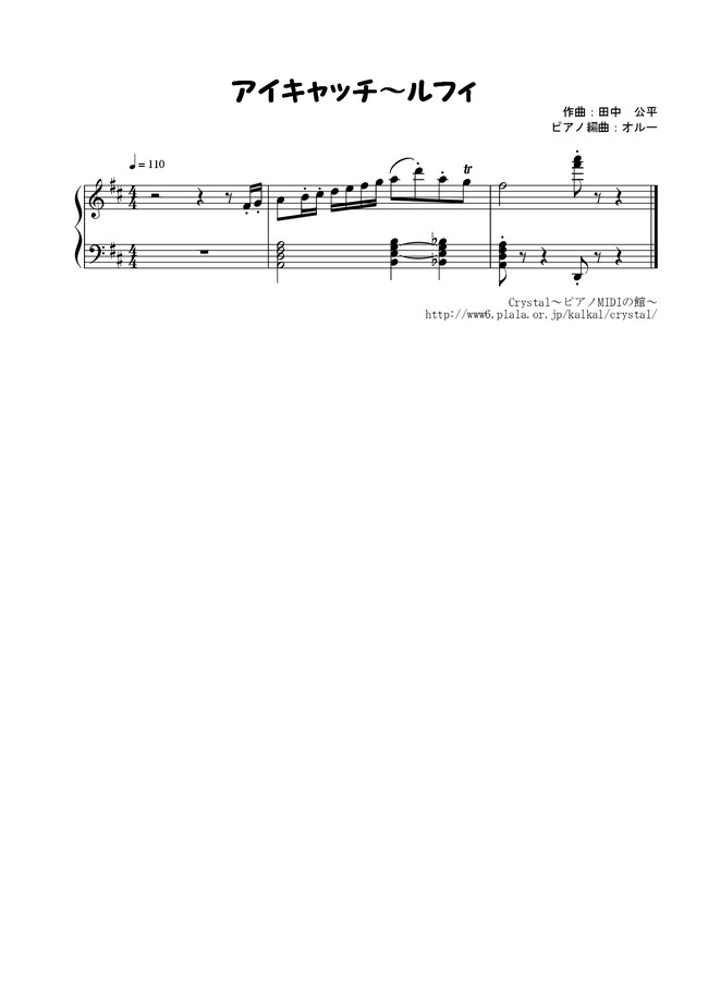 楽譜 one piece アイキャッチピアノアレンジ集 アイキャッチ サンジ オルー ニコニコ漫画