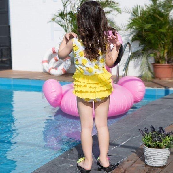 水着 子供 女の子 帽子付き キッズ ワンピース 黄色 アヒル 90 100 110 120 海 幼稚園 保育園 プール