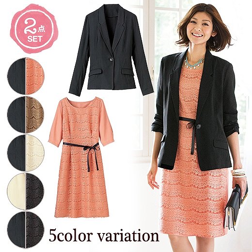 amazon nissen ニッセン ワンピースタイプ 小さいサイズ 日本製生地前開きワンピースアンサンブル ノーカラージャケット 7分袖 ワンピース ワンピーススーツ 通販