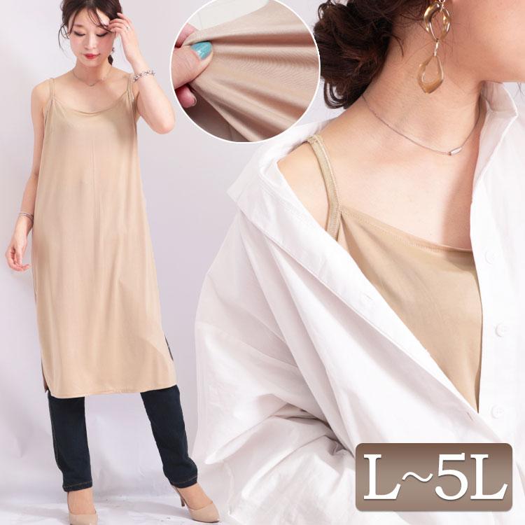 インナー レディース サテン風 インナー キャミソール ワンピース gina 透け防止 下着 肌着 キャミワンピ キャミソール 春 夏 秋 冬 ミディアム丈