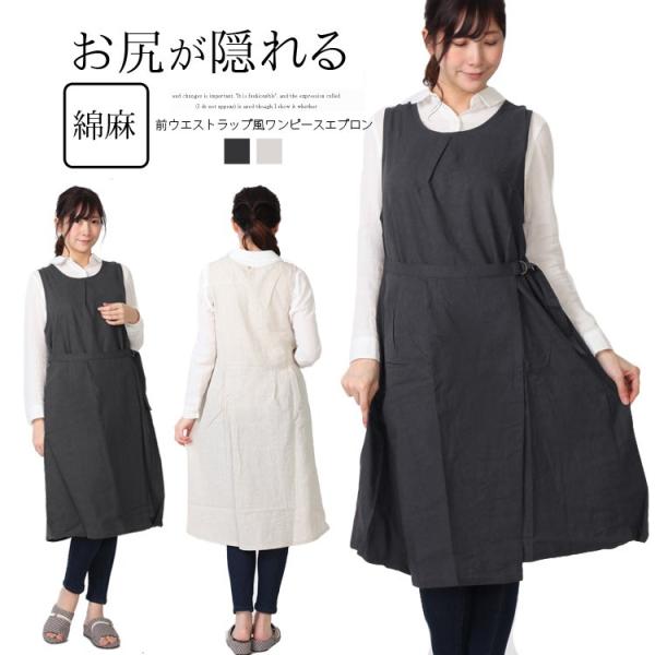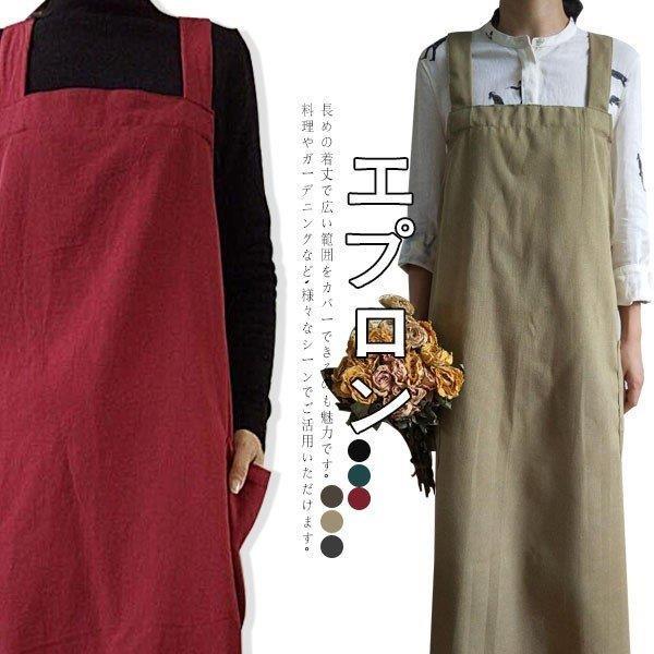 綿 麻 前ストラップ ワンピースエプロン エプロン ロング ワンピース エプロン 保育士 おしゃれ buyee buyee japanese proxy service buy from japan bot online