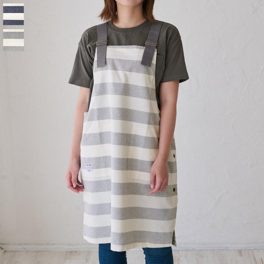 sサイズ 細ストライプ 麻 リネン エプロン エプロンワンピース カフェ 保育士 ガーデン