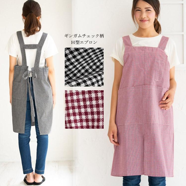ギンガムチェック h型 エプロン おしゃれ かわいい 保育士 ワンピース 綿 ワンピースエプロン az371 aznet 通販 yahoo ショッピング