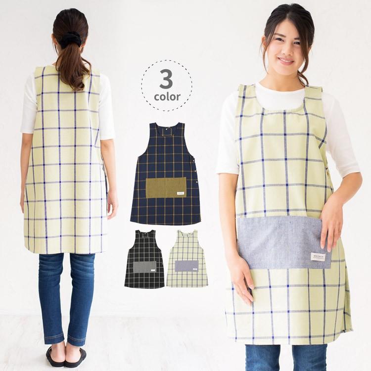 エプロン 保育士 おしゃれ かぶり 大きいサイズ ゆったり コットン シンプル ナチュラル 綿 エプロンワンピース ロング丈 チュニック メンズ ワーク チェック apron 018 かじなるストア 通販 yahoo ショッピング