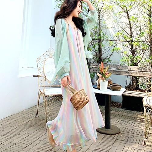 夏らしいカラフルなマキシ丈キャミソールワンピース キャミワンピ シフォンワンピース ロングドレス マキシワンピ レディース リゾートワンピース ロング丈 マキシ丈 大きいサイズ ノースリーブ 大人可愛い ビーチドレス 海 旅行 リゾート サマードレス 夏ワンピ デート パーティードレス お呼ばれ