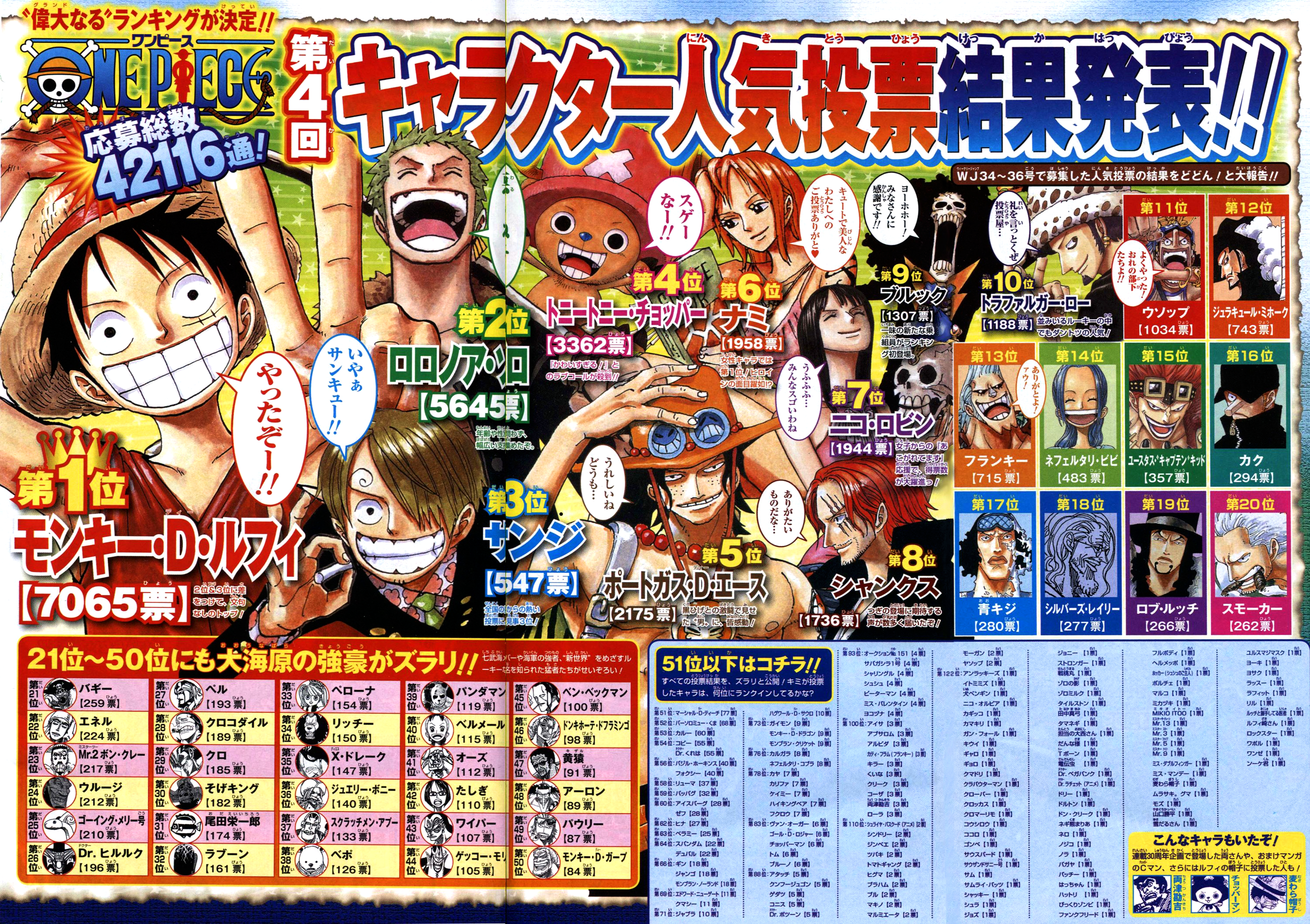 第1回 one pieceキャラクター世界人気投票 world top 100 最終結果 1 20位 公開 総投票数 約1200万票超 5 5再更新 遊戯王 ドラゴンボール通販予約情報局