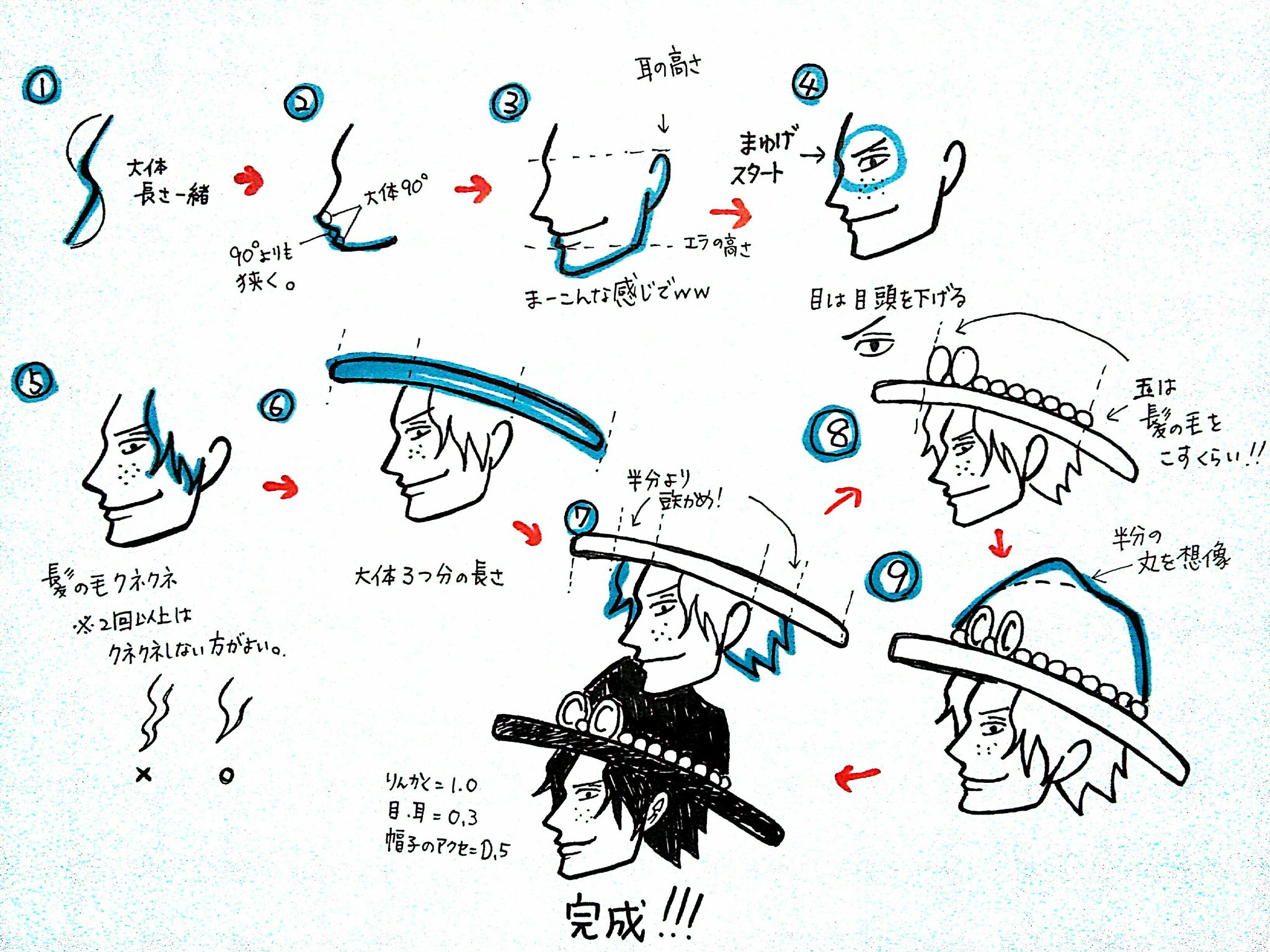 ぽにお ponio on twitter ルフィの描き方 ゾロの描き方 サボの描き方