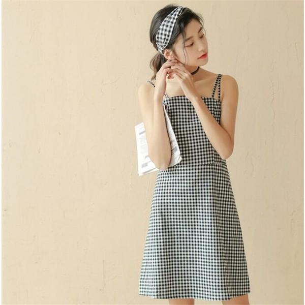 ワンピース ギンガムチェックの可愛い吊りワンピ 韓国セレクトショップ通販レディースmarron マロン