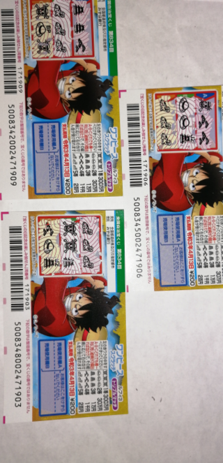 ワンピーススクラッチ小紫で4枚当たったのですが 200円が三枚 100 yahoo 知恵袋