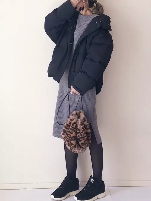ダウンジャケット コートを使った ワンピース スニーカー の人気ファッションコーディネート wear