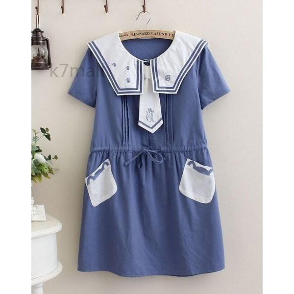 森ガール マリン セーラー レディース セーラー襟 ワンピース セーラー風 海軍風ワンピース レディース tシャツ 半袖 猫刺繍柄 best 318 gemma 通販 yahoo ショッピング