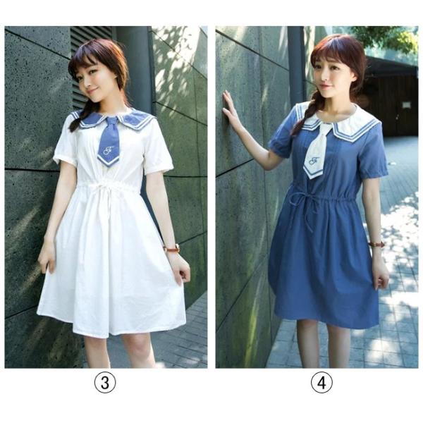夏新作 半袖 ワンピース マリン風 セーラー風ワンピース セーラー ワンピース セーラー服 ワンピ セーラーカラー 学院風