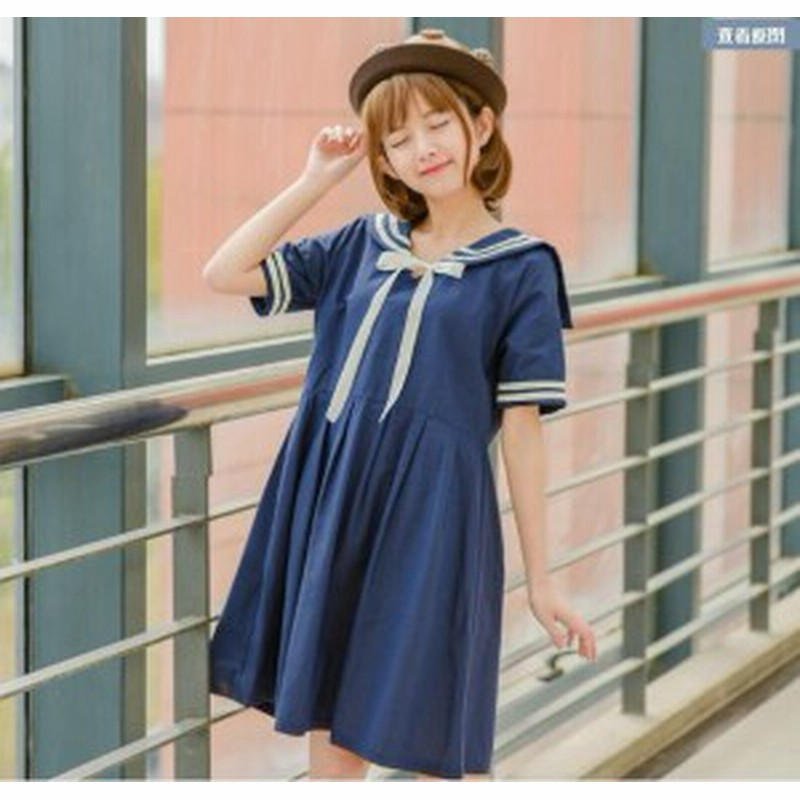 即納 森ガール ワンピース 半袖 セーラー襟 セーラー風 ワンピ リボン 学生 制服 春 セーラーワンピース 夏 白 ネイビー aライン ひざ丈の通販はau wowma 山陽販売 セーラー 襟 ファッション 夏 ワンピース