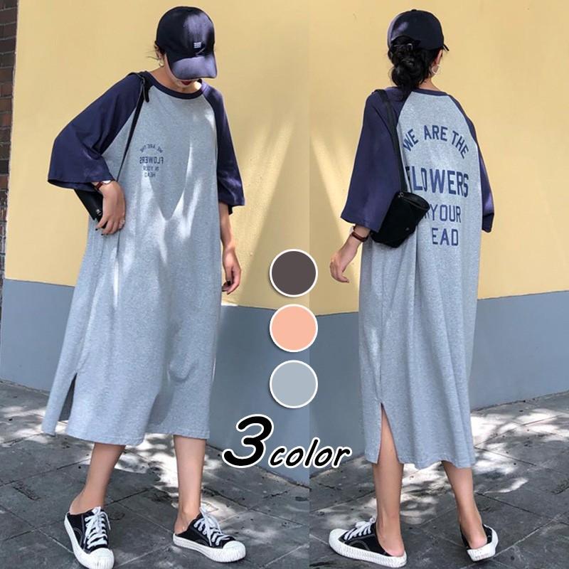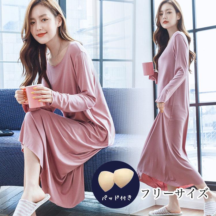 お色が選べるルームウェア パジャマ ラグランスリーブワンピース 長袖タイプ