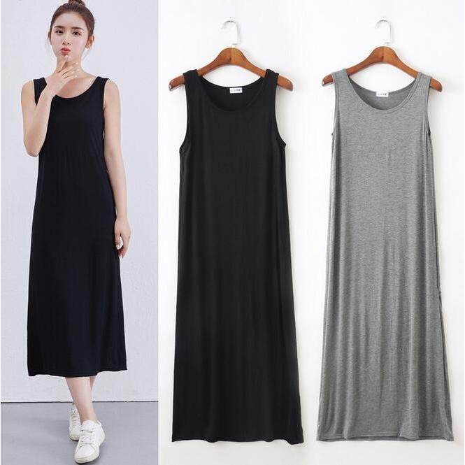 極上の肌ざわり お尻まで隠れる インナー ロング タンクトップ インナー ロング丈 シャツワンピース ワンピース