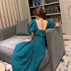 セミオーダー やわらかダブルガーゼのワンピース ターコイズブルーグリーン
