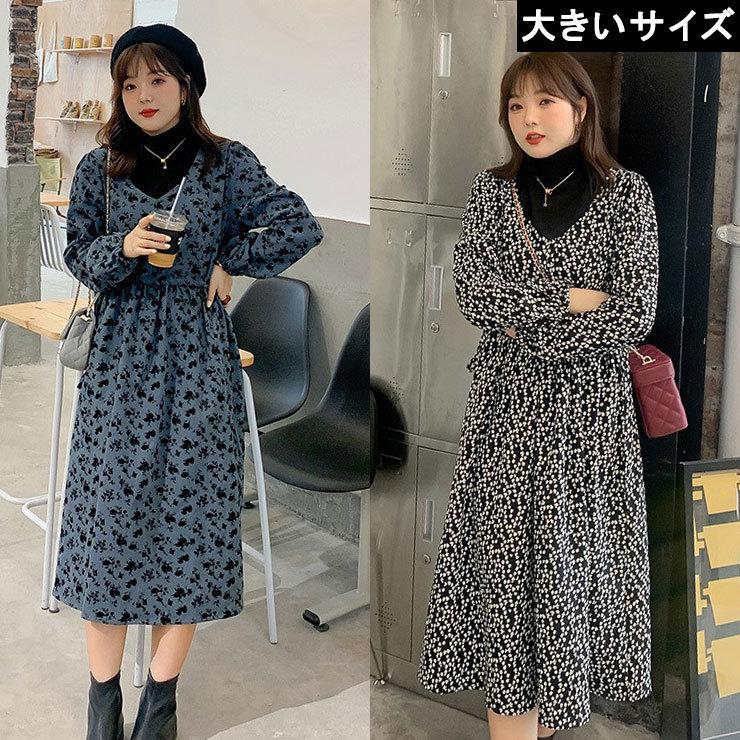 大きいサイズ レディース 重ね着風ワンピース タートル ボタニカル柄 小花柄 ll 3l 4l 5l ブルーブラック ブラックホワイト 新入荷 ネコポス不可 s6036 大きいサイズの服レディース queen 通販 yahoo ショッピング