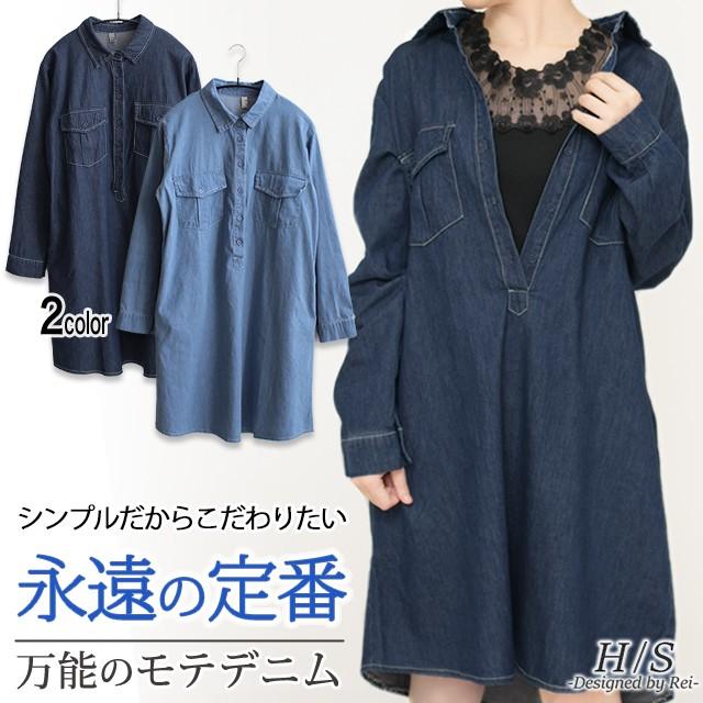 heygirl 春デニムワンピース デニムシャツワンピース デニムワンピ シャツワンピ デニムシャツ ひざ丈 ミモレ丈 長袖ワンピース 膝丈 大人可愛い ゆったり 大きいサイズ 膝上 ミモレ丈 ミディアム丈 プルオーバー