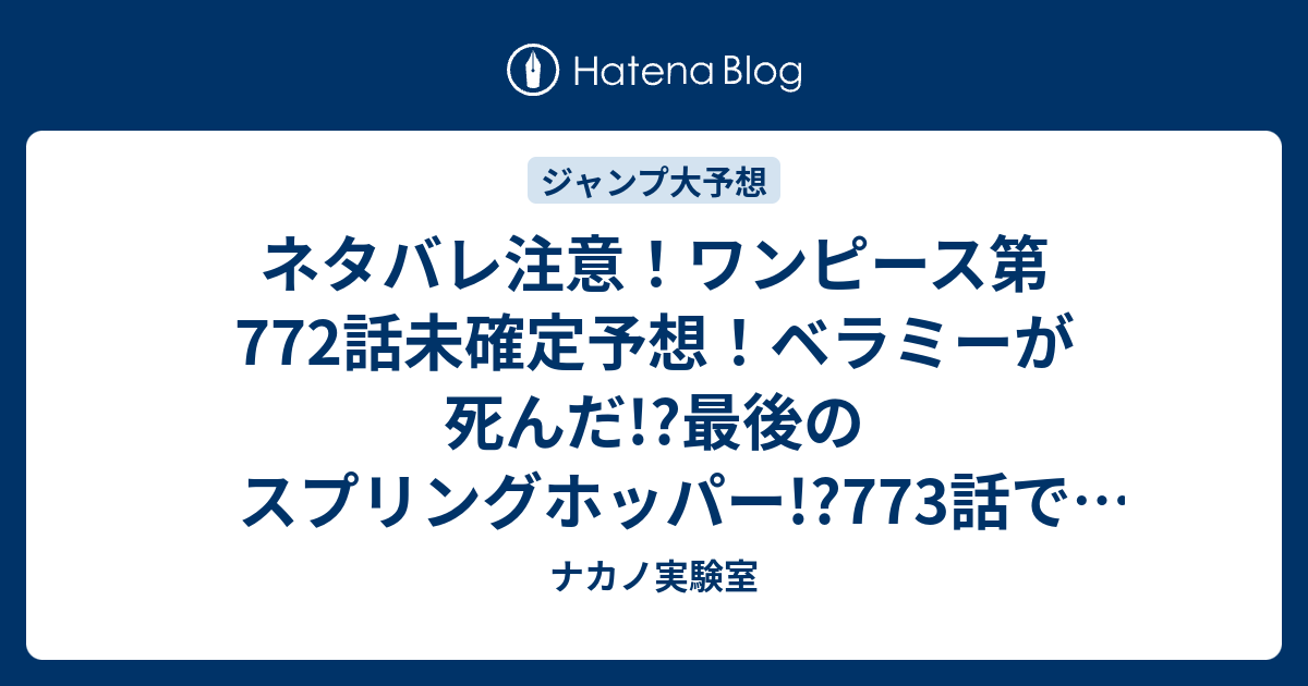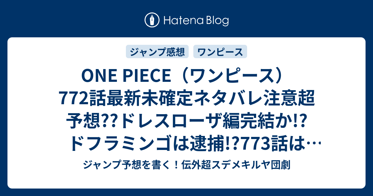 3月31日 木 のつぶやき ワンピースネタバレ772話 確定予想 ハクバと爆破 だが断る