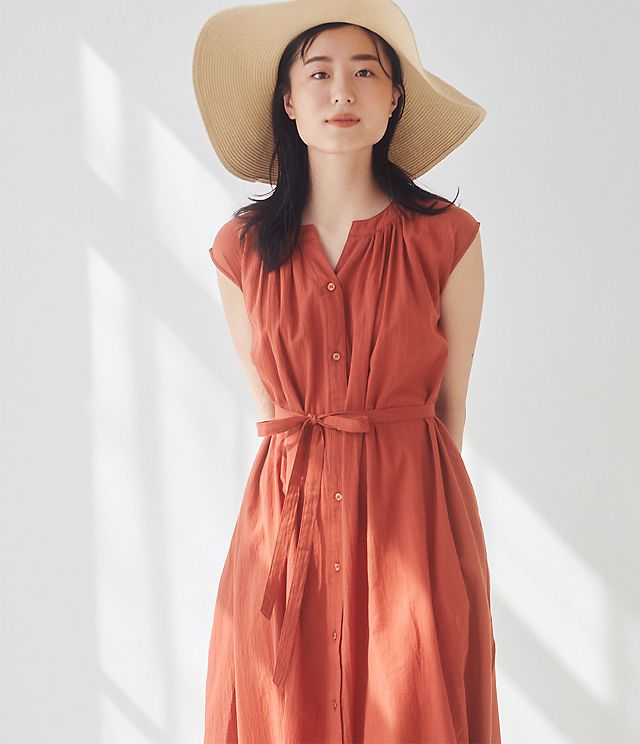 一年中快適な柔らかコットン100 ゆったりシルエットはおうち時間に最適 ダブルガーゼタックワンピ