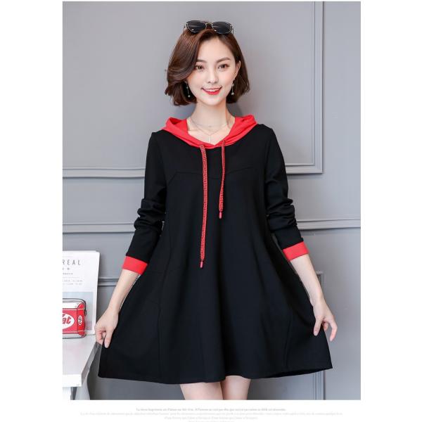 スウェットワンピース tシャツワンピース フード付 パーカー ワンピース 膝丈 ショート丈 英字ロゴ 長袖 レディース 女性 綿 コットン ダボっとした ワンピ ダボダボ 体型カバー 秋 送料無料 春 服 スタイリッシュ 中手 可愛い ビッグスウェット ブラック 黒い
