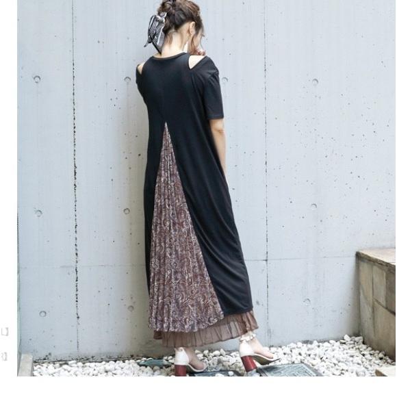 バックプリーツワンピース ペイズリー柄ワンピース カットソー シフォン プリーツワンピース ロングワンピース 体型カバー レイヤードコーデ e 469 eily 通販 yahoo ショッピング