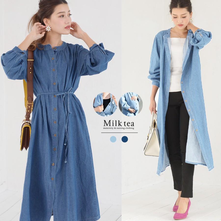 マタニティ ワンピース マタニティウェア デニムシャツワンピース オールシーズン 授乳 ママ ベビー 子育て ゆったり 大きいサイズ 日焼 au pay マーケット