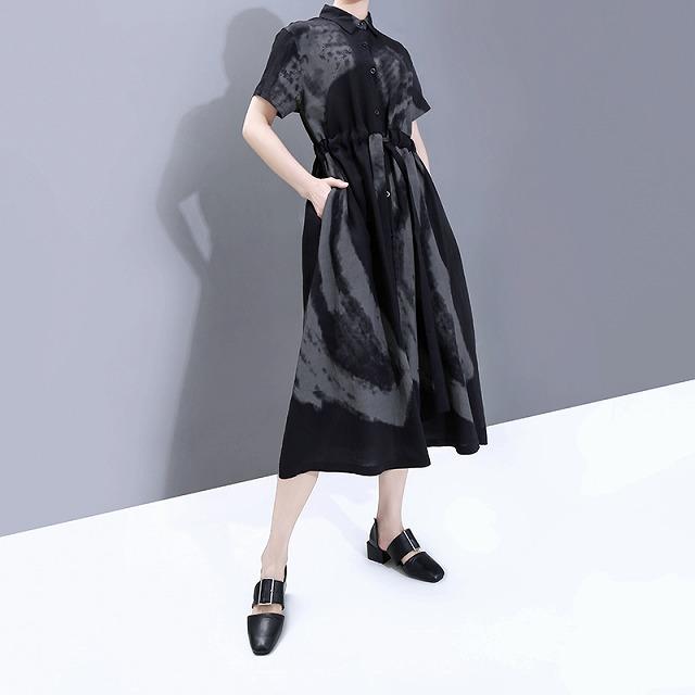 15 off 4 800円 4 080円 ワンピース レディース マキシワンピース ロング 夏ワンピ レディース 個性的 切替デザインワンピース シャツワンピース モード ロング ブラック 手書き風 ペイント とらみ とらみ