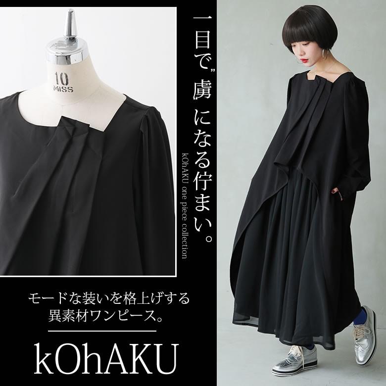 ワンピース アシンメトリー シャツワンピース 花柄 和柄 黒 ブラック モノトーン シック モード系 ヴィジュアル系 570 amouretvie モレヴィ powered by base