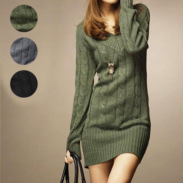 長袖マキシワンピース 深めvネック ロングワンピース リブ編み 無地 レディース 秋冬